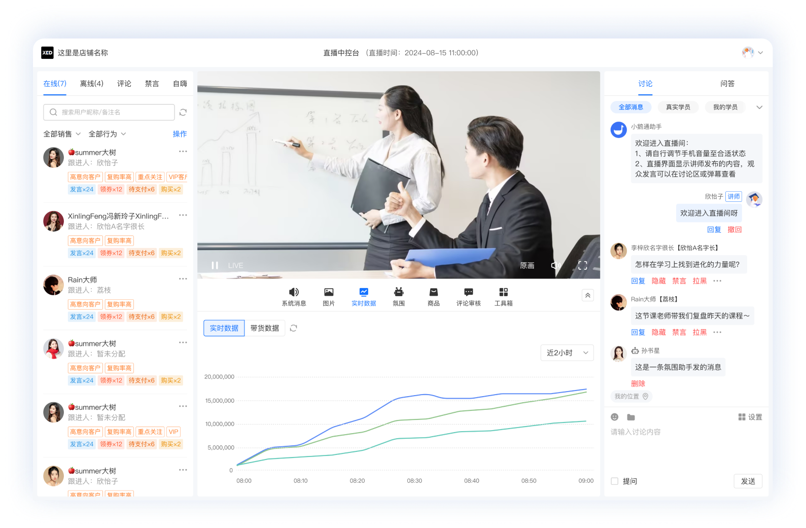 【数据驱动增长】:实时直播大屏 + 单场深度诊断,全维度拆解直播效果;打通店铺、企微用户全生命周期画像,每一场直播均可复制、可优化、可放大,精准算清每一分投入产出