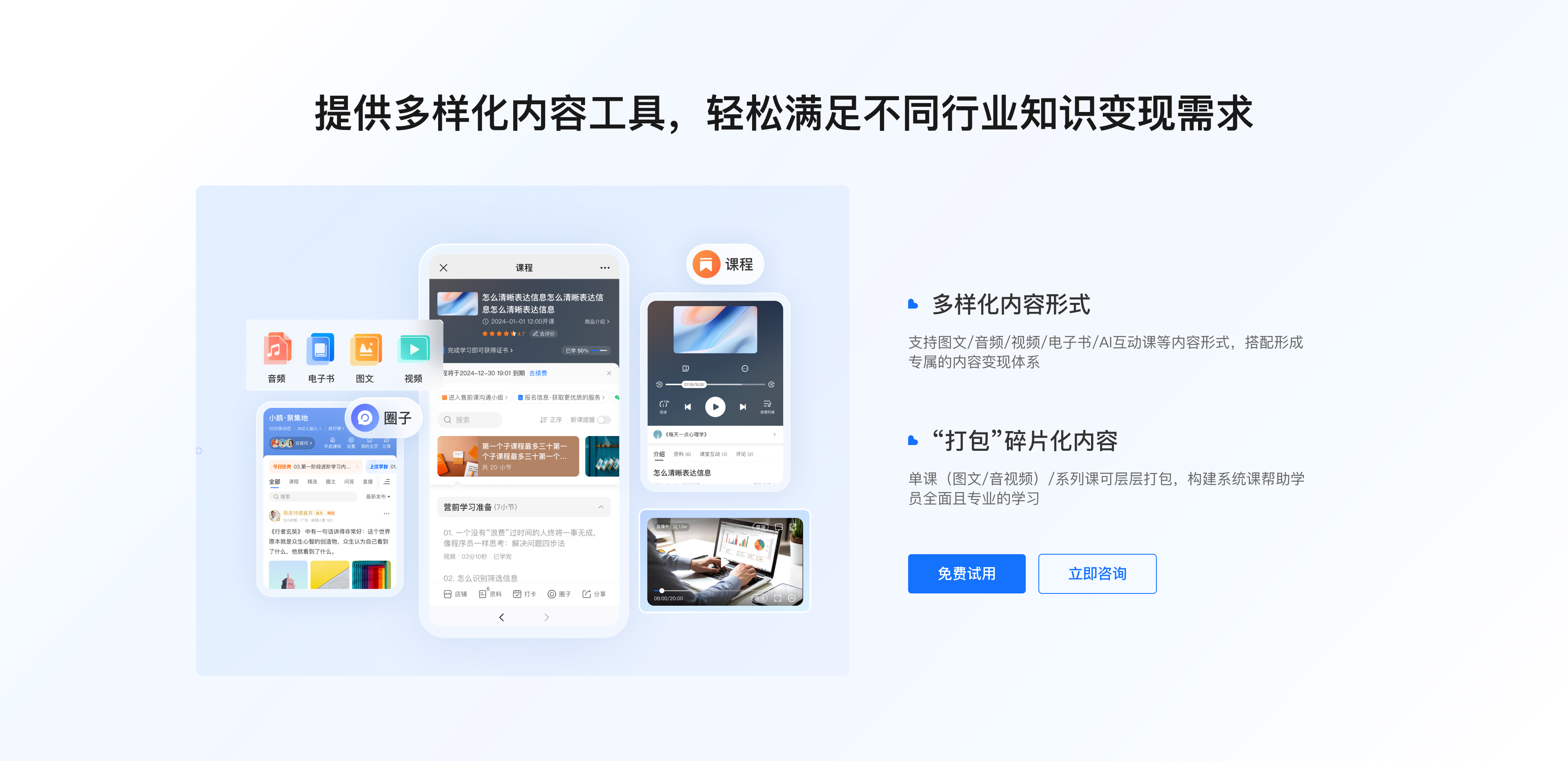 【智能直播・无人也能高转化】:自动化邀约 SOP,定时任务 + 多轮触达精准召回,到课率直冲90%;爆款直播多轮复用,AI 智能助理实时答疑、回放自动生成笔记 / 思维导图,助学效果拉满无人值守也能持续引流、持续卖课。