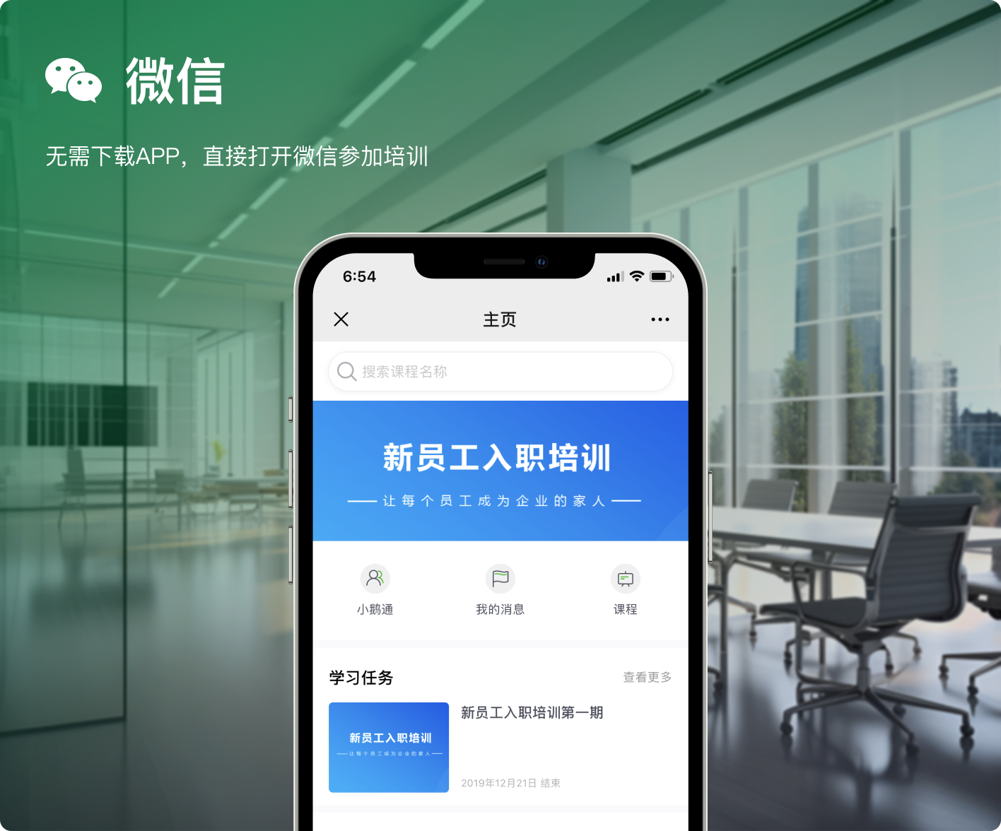 无需下载任何终端,微信和企业微信里就能直接培训